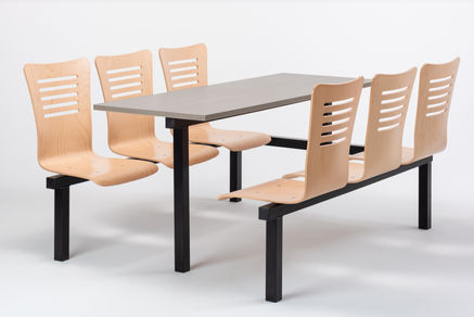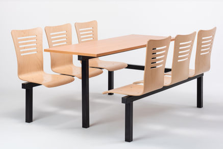 A classic modular canteen seating with contoured, plyform one-piece beech