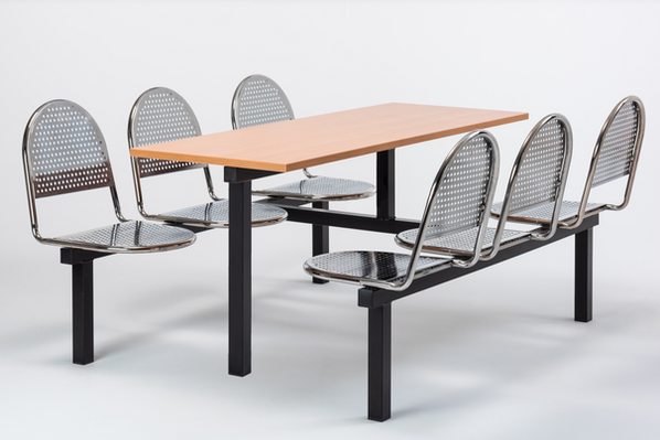 Perforated all metal, fast food canteen dining unit suitable for high traffic areas